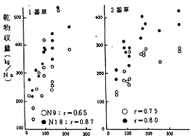 土壌草種〜褐色森林土、疑似グライ土:オーチャードグラス主体草地:窒素施肥量9kg/10a・年水準。