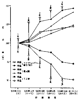 2)品種別貯蔵試験:昭和61年、本州品種2、北海道品種9、炭酸ガス密着貯蔵