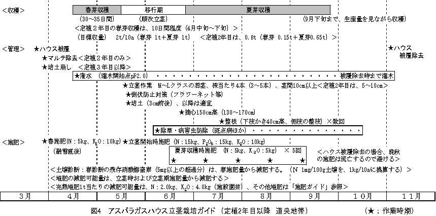 (グリーンアスパラガスの新品種、新作型に対応した多収維持管理法)