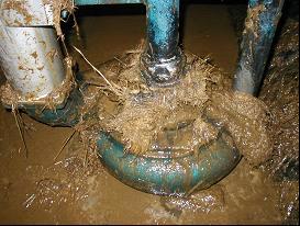 写真1 長藁による受入槽破砕ポンプの閉塞