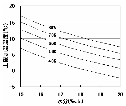 図3 大豆の子実水分と外気の湿度に対する裂皮粒の発生のない加温温度の上限