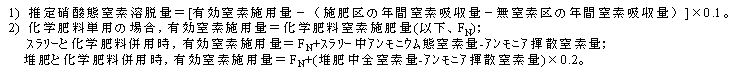 スラリーと化学肥料併用時,有効窒素施用量=FN+スラリー中アンモニウム態窒素量-アンモニア揮散窒素量;