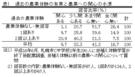 小学生自身や保護者の評価も高い。また、体験回数が多いほど農業への関心は増加する(表1)。このため、農業体験学習を繰り返しおこなうことは、農業への関心を高める効果が