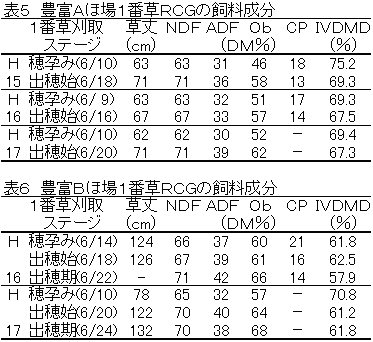丈が高く、生育が進行すると栄養価の低下が顕著であった(表5・6)。