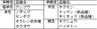 現在チモシーは早生品種が栽培面積の大半を占めています。しかし、収穫の期間はlか月に及ぶこともあり、刈り遅れによる栄養価の低下などの問題を生じています。このような問題を回避する最も有効な方法が早晩性を異にする幾つかのチモシー品種を草地毎に導入し、刈取りの適期の拡大を図ることです。チモシーには8つの優良品種がありますが(表1)、今回新たに中生2品種が加わりました。両品種とも北見農試の育成です。以下、新しいチモシーの2品種の紹介をします。なお、これらの品種の種子の販売は海外での種子生産の後になります。