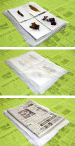 ※この作業の時、海藻おしばにかぶせたサラシ布は取らないで、吸取紙だけを交換してください。