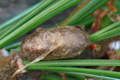 写真5 キタマツノミドリハバチ繭、長さ8.5mm。札幌、?ストローブマツ、2008/9/2。 |