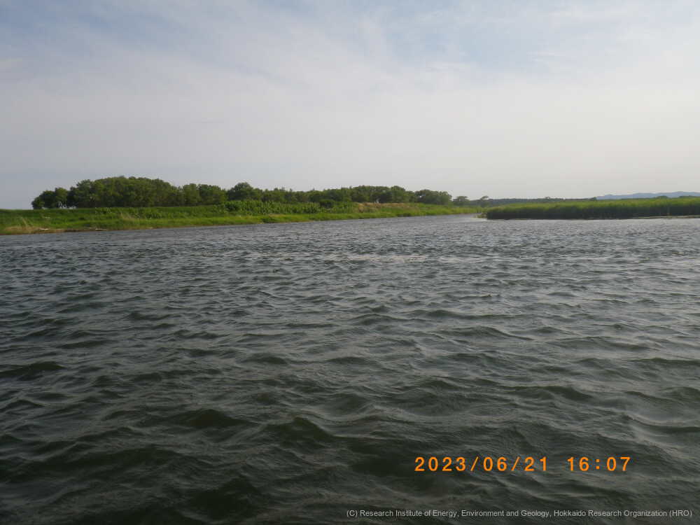 2023年の調査は、比較的大潮に近い6月21日の潮位50 cm程度(枝幸)の時間帯に実施した [6]。この時、採水地点(St-1)の水深は0.5 mであった。塩化物イオン濃度は約16,000 mg/L(塩分換算で約30‰ [7])であり、海水(オホーツク海沿岸の夏季表層海水の塩分約33‰ [8])の影響を強く受けている状況にあった。過去の測定値を含めるとCOD濃度は3~22 mg/Lと大きくばらつき、塩化物イオン濃度と負の相関関係にあることから、沼のCOD濃度は海水による希釈の影響で大きく変動するものと考えられる。海水の影響が比較的弱かった2000年のCODは22 mg/Lと高く、褐色を呈していたことから、腐植物質の影響が考えられた。