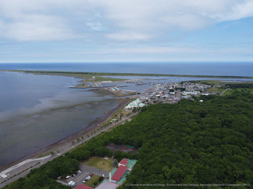 サロマ湖は、南側が100~200 mの丘陵地で、北側はオホーツク海に2箇所で通じる海跡湖である。