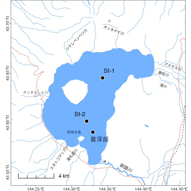 [5] 下田信男・遠藤信也,1967.湖水の化学成分の地球化学的研究 (第4報): 屈斜路湖の水質の化学的特性.室蘭工業大学研究報告.理工編,6(1):21–26.https://muroran-it.repo.nii.ac.jp/records/7564